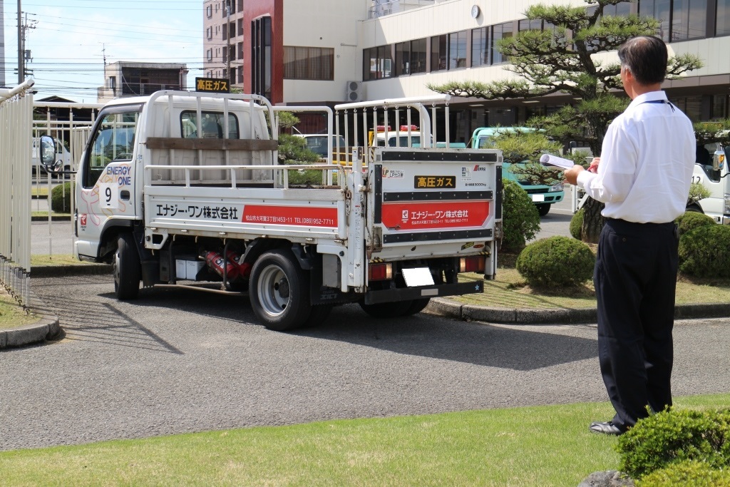 去る10月3日(土)、松山市内の叶ホ原自動車教習所において、県内から約30名の見学者、関係者が集まり、(一社)愛媛県LPガス協会配送保安コンテストが開催されました。