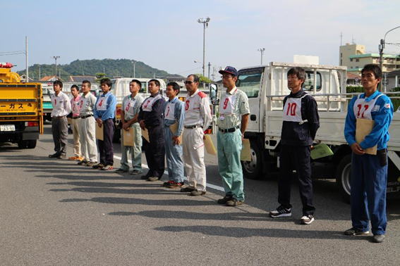 開会式では、須賀会長から「まず、LPガス関係の法令遵守と交通ルールをしっかりと守って頂きたいと思います。自動車教習所の教官の方々も、皆さんの運転技術については、非常にレベルが高いと評価してくれていますので、本日は普段の力を十分に発揮して良い成績を収めて欲しいと思います。」と挨拶があった後、選手紹介、選手宣誓、競技説明がありました。