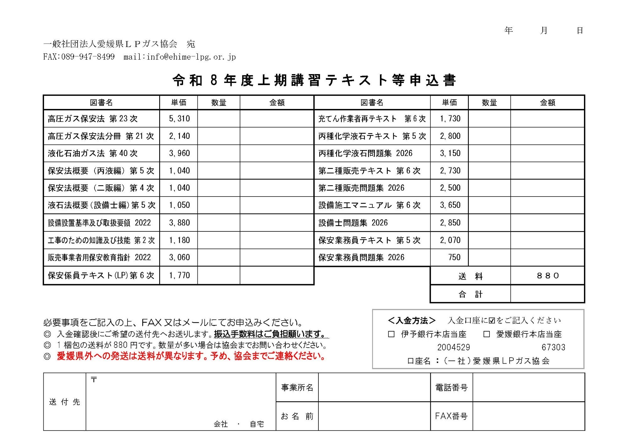 なお、協会窓口で受け取りを希望される場合、インボイス対応書類がご入用の場合は、申込書を利用せずに協会までご連絡ください。 ℡089-947-4744